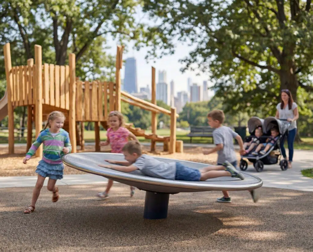 Nowoczesna i bezpieczna przestrzeń w sercu miasta, która zachęca dzieci do aktywnej zabawy, integracji i rozwijania umiejętności społecznych.