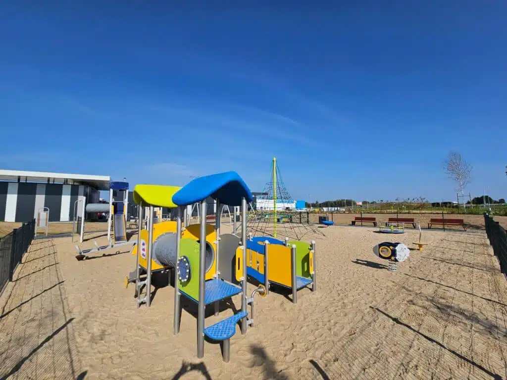 Na terenie galerii powstał plac zabaw dostosowany do dzieci w różnym wieku. Dla najmłodszych stanął zestaw z serii Mini, natomiast starsze dzieci mogą korzystać z linarium do wspinaczki. Plac zabaw stał się uzupełnieniem przestrzeni galerii, tworząc miejsce relaksu i zabawy na świeżym powietrzu.
